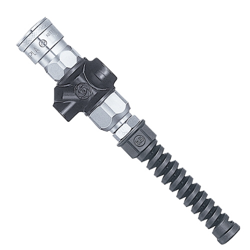 滾軸軸承式轉(zhuǎn)環(huán)結(jié)構(gòu)可抑制軟管的扭曲,減輕手持負(fù)擔(dān)。