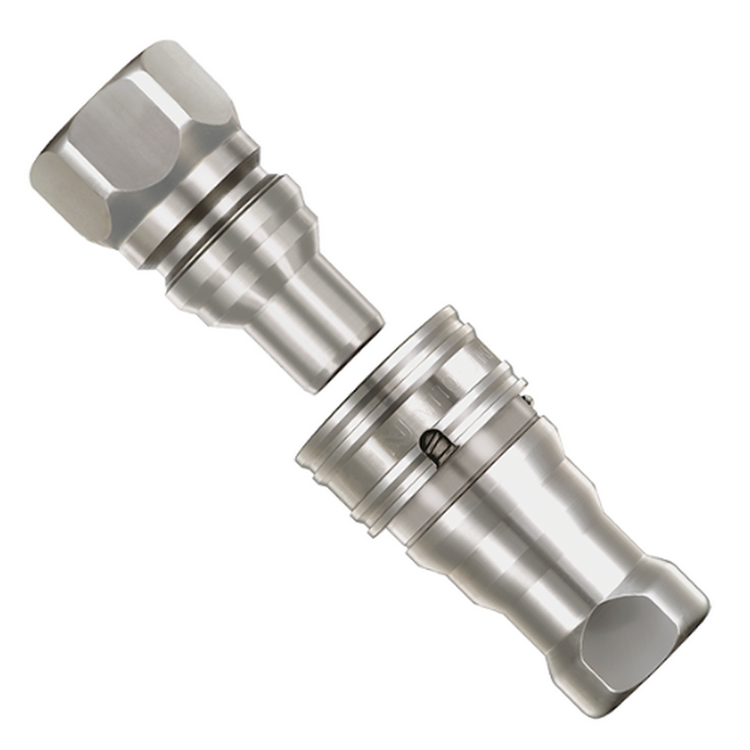 ●套筒·插塞均內(nèi)置自動(dòng)開(kāi)關(guān)閥門(mén)、防止分離時(shí)液體流出。容易裝卸。