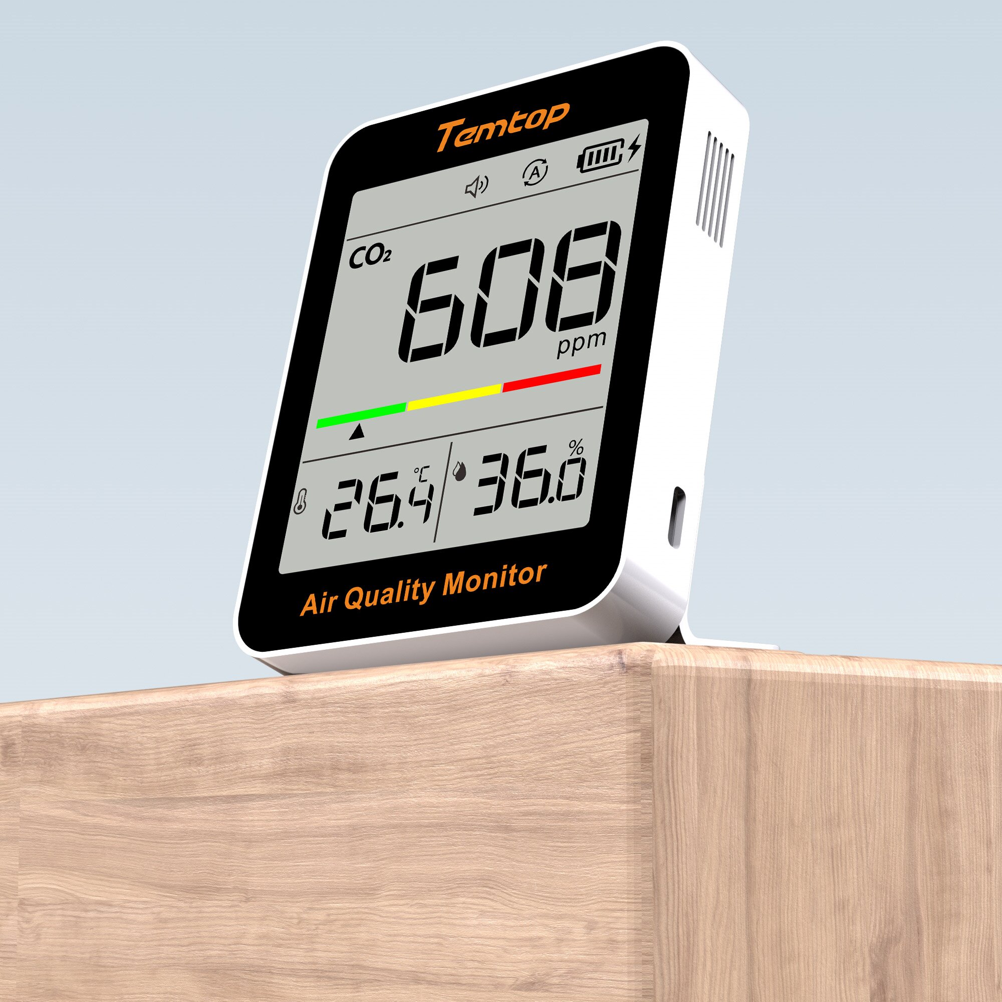 Temtop M2000 第二環(huán)境空氣質(zhì)量監(jiān)測(cè)儀是一款高度準(zhǔn)確和可靠的儀器,可測(cè)量和記錄各種空氣質(zhì)量參數(shù),包括 CO2、PM2.5、PM10、溫度、濕度、HCHO 和顆粒物。